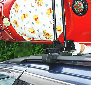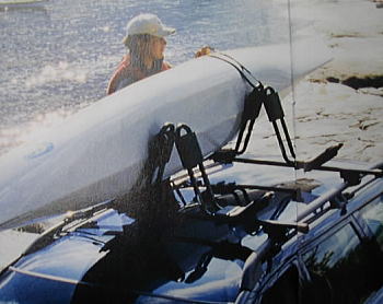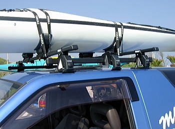 スーリー520 U字バーにカヤックを立てかけて使用します。 U字バーは使用しない時は倒して、ルーフと平行に低くすることができます。 (本体とメインバーの取り付けは5mmアーレンキーが必要です。) メインバーからの高さ435mm。 3.25mベルト付き。 ¥10.000 写真では使っていませんが、メインバーにキャリアパッドを使うことを推奨します。カヤックのホールドが良く、カヤック自体にもダメージが少なくなります。 (ドイツ技術監査局の総合テスト合格製品) |