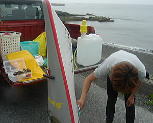 終了後にカヤックを洗うのにも、トラックの荷台はすごく便利! |