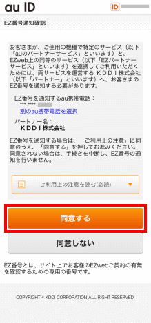 | C内容をご確認のうえ「同意する」をタップします。 |