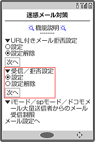 | C「受信/拒否設定」を選択して、「設定」にチェックを入れて、次へを選択します。 | ||