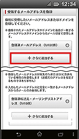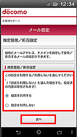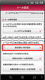 | C「指定受信/拒否設定」の詳細設定画面が表示 【受信するメールアドレスの設定】をクリック |