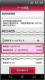 | G設定内容をご確認のうえ、【設定を確定する】をクリックして完了です。 設定内容が変更された場合、変更された情報がピンク色で表示 |