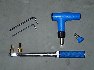 | 正式なトルクレンチは写真下段のように長いです。 (これでも小さい方のトルクレンチ。1/4Sq用) 最近はコンパクトな簡易型のトルクレンチもできました。 (写真T型のもの。このシリーズには、トルク値固定型と アジャスタブルがあります。) |
