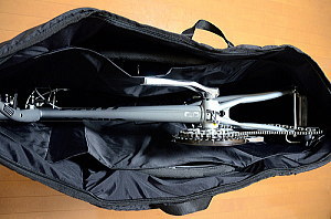 14) タイヤとフレーム本体を輪行バッグ(OS-500)に入れる。 |