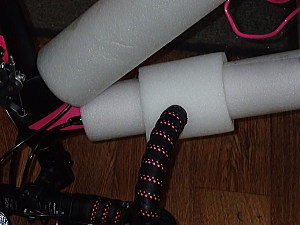 | 1) ライトやサイコンなどハンドル周りの装備を取り外す。 2) リアのギアを一番外側(トップ:重い側)にする。 3) ペダルを外す。 詳しくはこちら 4) 前後のブレーキワイヤーのクイックを外す。 5) サイズによってはサドルを下げる。 6) 自転車を逆さまにする。 7) なるべく外への出っ張りは押さえた方が良いので、 前輪のクイックを抜き、前輪を外す。 中空ハブ軸外側を保護キャップするのがモアベター。 |