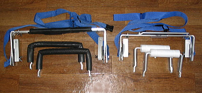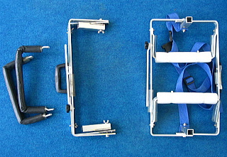 ★ カスタマイズ ZENでは改造して、工具を使わずに、サポーター・アームを外し、メインフレームを半分の大きさに折りたためるようにしました! 3ピースだったのが5ピースでさらにコンパクトに! この状態に分解するのに1分10秒です。 組立は1分30秒です。 今回はWサイズを加工しています。 Sサイズならさらに小さくなります。 (写真を見やすくするためベルトは外してあります。 サンプルは実験的にサポーターアームはパッドを交換したスーパーストロング仕様です。→● ) |