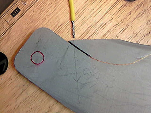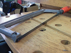 今回は折れたラダー・ブレードを切り出してつくりました。 デルリンなのでガシガシと鋸で切ります。 |