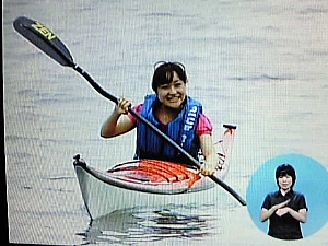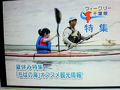 | 久々のTV出演。今回は県の広報番組『ウィークリー千葉県』です。 夏休み特集「千葉の海」オススメ情報! リポーターにカヤックをスクーリングして、いっしょに漕ぐシーンを撮りました。 |