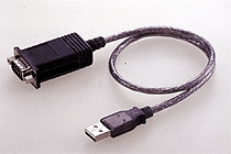 USB端子用変換ケーブル。ノートパソコンなどUSB端子へ接続する場合にシリアルインターフェースからUSBへ変換するケーブル。 |