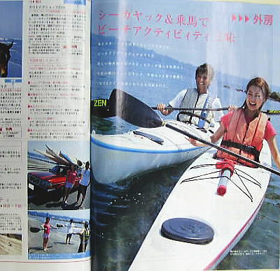 | シーカヤッキングは体験したいアウトドア・アクティビティのけっこう上位にあるようです。 ZENのシーカヤック・スクールは、南房総を紹介する雑誌やムックにほぼ100%近く掲載されています。 2004年8月には鴨川を紹介するTV番組にも登場します。 雑誌によって、モデルとカメラマンさんらの取材クルーが来ることと、ZENにあるポジフィルム(写真)を貸し出すこともあります。 通常撮影される場合は、陸上から望遠レンズで撮る場合がほとんどです。 でも、最近は、いっしょにスクールを受けてからカヤック上から撮影したり、海に入ってと、アクティブなカメラマンさんが増えてきました。 でもなかなか、カヤックを思うように操作して、撮影というのは難しいですね。 今回のカメラマンさんはパンツをビショビショにしながらの撮影で、終了後にパンツを買い求めに行きました。 そのかいあって、今回の『るるぶ じゃぱん』では肉薄した写真になっていますね! ところで、『午前中鴨川でシーカヤック、午後九十九里で乗馬と、1日で2アイテム楽しむことも可能なのだ』 とありますが、 シーカヤックの後は、鴨川にいいお風呂がたくさんあるから、ゆっくり入浴して、おいしい物を食べ、午後はマッタリ海を眺めている。 そんなコースをお勧めします。 スクール受講者はたいていそうしていますね。 |