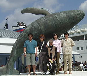 | 二見港にあるザトウクジラのモニュメントは記念撮影にはもってこいのとこ。 クジラにまた来るよと告げて島を離れました。 |