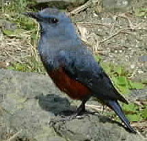 | 美しい声で歌うイソヒヨドリ けっこう人なつこいですが、野鳥にエサをやっては絶対にいけません! |