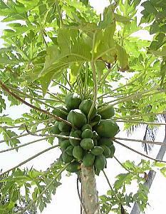 | 夜の森探検 画面中央に光るのがオガサワラオオコオモリの目! フレーツバットです。 実のある樹林の中でガサガサやってます。 巨体が飛ぶ姿は恐ろしげです。一眼レフと大きなストロボがないと撮影はなかなか難しいですね。 |