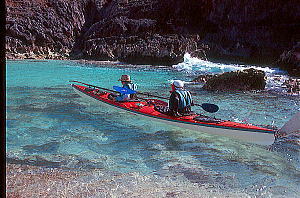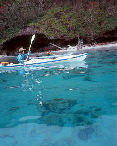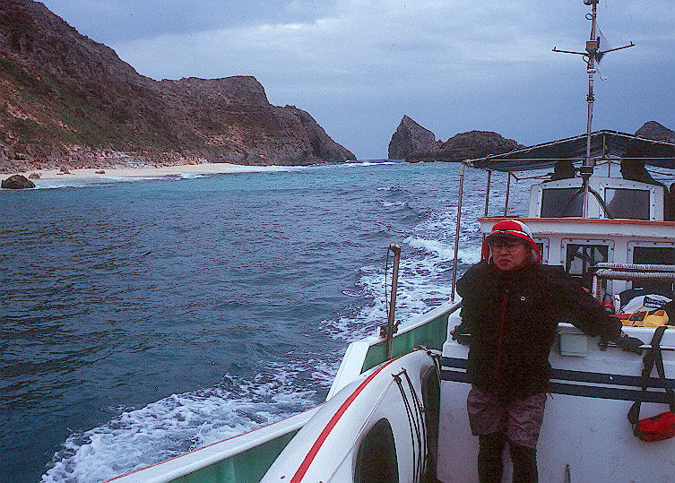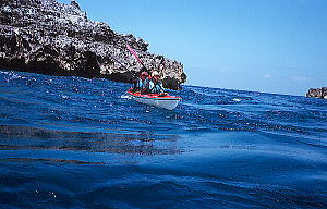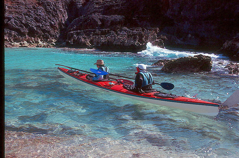 カヤックでしか入れない洞窟をくぐって南島へ上陸するのですが、海がいい条件でないとできません。 |