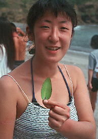 | はからめ、知ってる?上の写真のシズちゃんが持っているのがハカラメの葉。 葉っぱを持って帰り、日当たりのいい壁にでもピンでとめておき、キリフキで水をやっていると、あ−ら不思議、そのギザギザな葉っぱのフチからどんどん芽が出てくる。だからハカラメ。葉から芽! 裏側には根がチョロチョロとでてくる。芽がだんだん大きくなるにつれ、母体の葉っぱは養分を吸い取られ、しなびていくから、そうしたら鉢に移してやれば成長していく。 やがてきれいな花を付けるまでに成長する。過去に一緒に行ったメンバ−はけっこう育てていて、顔を合わせるたびに「お宅のハカラメは?」が挨拶代りになっていた。 我が家のハカラメもけっこう育ち、ここにアップしようと思ったのだが、、、、。寒さにやられてダメにしてしまった。 観葉植物の趣味はまったくないけど、南の島からの植物が育っていくってのはいいものだ。なお、採ってくるならなるべく肉厚なハカラメがいい母体になるようだ。おみやげにするのにいい。実際に土産物屋でも売っているが、簡単に拾ってこられる。例の秘密の場所ね。 でも考えて見ると不思議な子孫の残し方。 ハカラメ:本名はセイロンベンケイソウ。亜熱帯植物。短日性(日照時間が短くなると花をつける) |