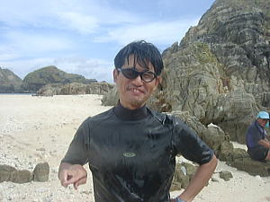 せ、芹山さんが海賊に! モカラク島で飛びこんだらレンズが落ちた。 |