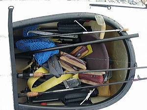 池上艇は道具だらけ 今回、カジキマグロがヒットした。 →釣りページ参照 |