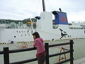 いつもスタートは渡嘉敷島だけど、今回は初めて座間味島が基点。 フェリーのイラストをお気に入りのサツキさん。 |