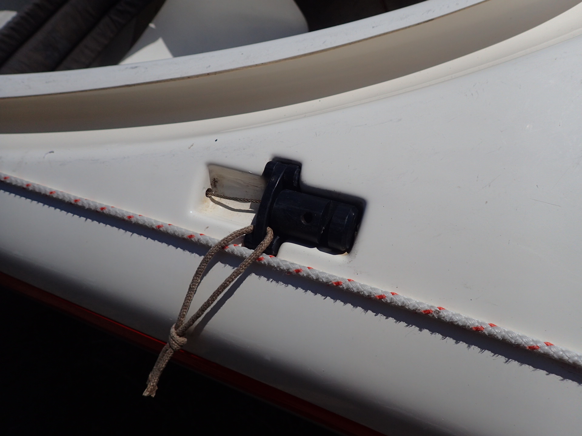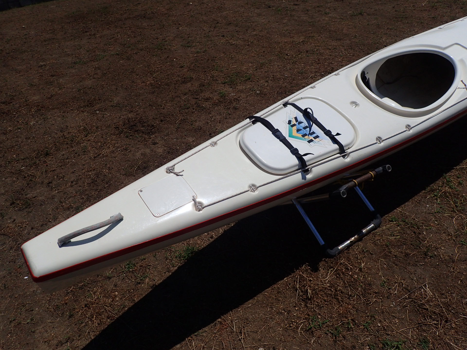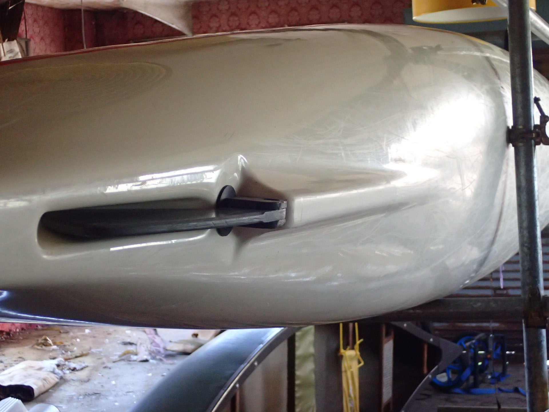 ハル(ボトム)後部には強いキールが立ち、その延長にラダーが収納されています。
