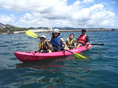 | 家族プラン ファミリー・シーカヤック体験コース ご両親+3才〜小3年生くらいまでのご家族で体験できます。 基本は3名ですが、さらにお子様もう一人同乗することも可能です。 *パドルがぶつかり合いますので、同時に漕ぐのは2名づつとなります。 交代しながら漕ぎます。 陸上での講習時には人数分のパドルで練習します。 3人、¥18500 カヤック・ライフジャケット等レンタル込み 乗員が増える場合+¥2500/1Kid |
