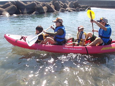 | 親子で、家族でシーカヤックやカヌーを楽しみたい方たち! 千葉県南房総鴨川の美しい海でシーカヤックを体験スクールできます。 ・ 安定性の良いシットオントップタイプのカヤック中心に体験できるのでお子様連れでも安心。 ・ 基本操作をマスターしながらミニミニ・ツアー。 上達度に問題なく、海の状況が良ければ、湾の外まで〜! トビウオやウミガメに海上で遭遇する可能性のあるエリアです。 ・ 託児所に預けるのではなく、ご家族いっしょに楽しみましょう。 ・ お子様一人でシングルカヤックを操作するのは小学4年生くらいの体格以上からとなります。 一人一艇の場合は→お子様でもステップ1 ¥8800となります。 |