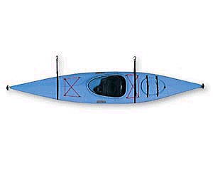 カヤックハンガー・シングル 省スペースでカヤックを収納できる優れたシステムです。 完成されたナイロンベルトループはウオールハンギングを手軽に実行できます。 カヤックのセットや外しは簡単に行なうことができます。 このシステムは、カヤックがもしも増えた場合、もう一つのセットをさらに下へと付け足すことが可能です。 ¥5.000 |