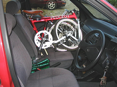 | プジョー・パシフィックを助手席に バーディー系(MD-1やビアンキ・フレッタ)のプジョー・パシフィックはコンパクトに畳めます。