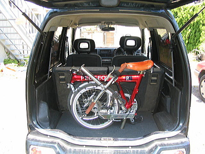 | 後席をフルに使うと最後部のラゲージスペースは狭くなります。 もちろんフォールディングのプジョーパシフィック(BD-1と同型)など楽々。 |