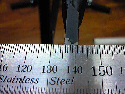 | まずは、左右エンドの平行度をチェックします。 左右のエンドに装着したエンド修正工具の合わせ目を確認すると、ズレと片方の開き(写真下の白く見えるスリット)がありました(><) これを修正します。 |