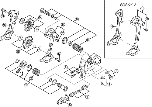 | 同じXTR/M-952でもロットでB軸スプリングの長さが異なります。 |