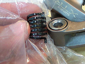 スプリングの向きに注意! 末端が外周よりも低くなった側がエンド側にきます。 また、スプリングは同じXTR/M-952でもロットによって違う物を使います。 下の欄外を参照ください。 |