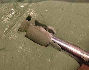 最後は大盛りに盛り付けて、ヤスリで整えることにしました。 でも、けっこう大変です。 出口をふさぎ、フルに最後の1/4を作るのに、素材導入溝を開ければ良かったです。 |