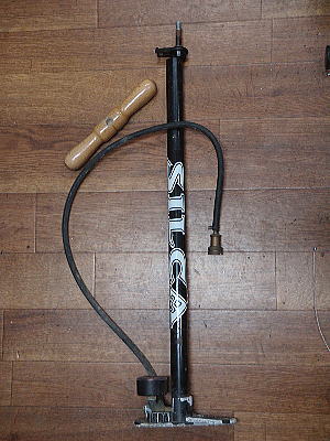 シリカのピスタ・ポンプと言えば、フロアーポンプの定番中の定番! 自分もアマチュア時代からもう30年以上も使っています。 ファンも多いのではないでしょうか。 シンプルな構造に加えて、リプレースメント・パーツ(補修部品)の供給が親切というのが、永く使い続けられる理由ではないでしょうか。 今回の修理依頼は、 1)ハンドル交換。 2)ピストン・パッキン交換。 3)ホース&ヘッド交換。 ほとんどフルに交換となります。 でもこれで生まれ変わります。 今回のモデルはスーパーピスタ |