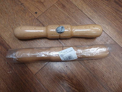 キレイな木製大型ハンドル。 純正リプレースメントパーツが用意されてます。 ピストンシャフトにただねじ込むだけ! |