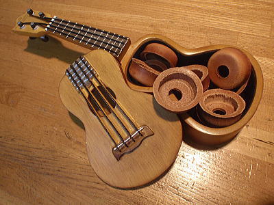 キレイに成型された皮パッキン。 ゴムではなく、昔ながらの皮です。 木製ハンドルといい、なんかロハスなポンプですね♪ |