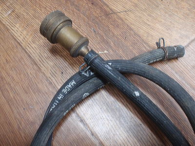 シリカ・ピスタポンプのウリはこのヘッドにあります。 ロックレバーが無く、バルブに突っ込むだけでok! ただし、その機能を維持するには、ヘッド内のパッキンを頻繁に交換して、締め付け力を保たねばなりません。 ヒラメのヘッドに交換する人もいます。 ホース。こればかりは純正品は今となってはイマイチです。 劣化しやすいです。クラックが入り、圧が抜けます。写真で白くブチに見えてる所は表面が剥離して中の繊維部が見えているのです。 |
