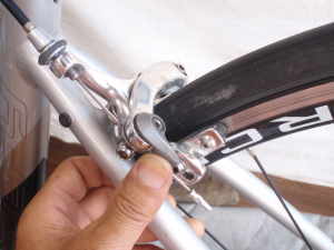 | F 自転車を正立させて、前後のブレーキのクイックを締めて完成! | |