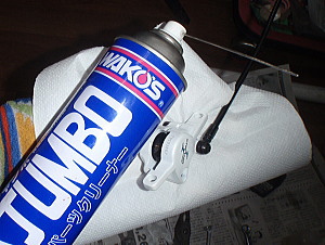 13) キャリパーとレバーもフルードが付いていたらふき取り、イソプロピルアルコールでキレイにします。 アルコール系パーツクリーナーでOKです。 ZENではWAKOSのクリーナー。 |