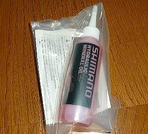 下準備 ブリーディングキットを用意しておきます。シマノのブリーディングキットにはフルード(ミネラルオイル)・注入ボトル・排出ホース・排出オイル受けビニール袋が同梱されています。 オイルはHayesのDOTとは互換性がありません。 工具は7mmコンビネーションレンチ キャリパーのスペーサー 自転車はスタンドにセットすること。 |