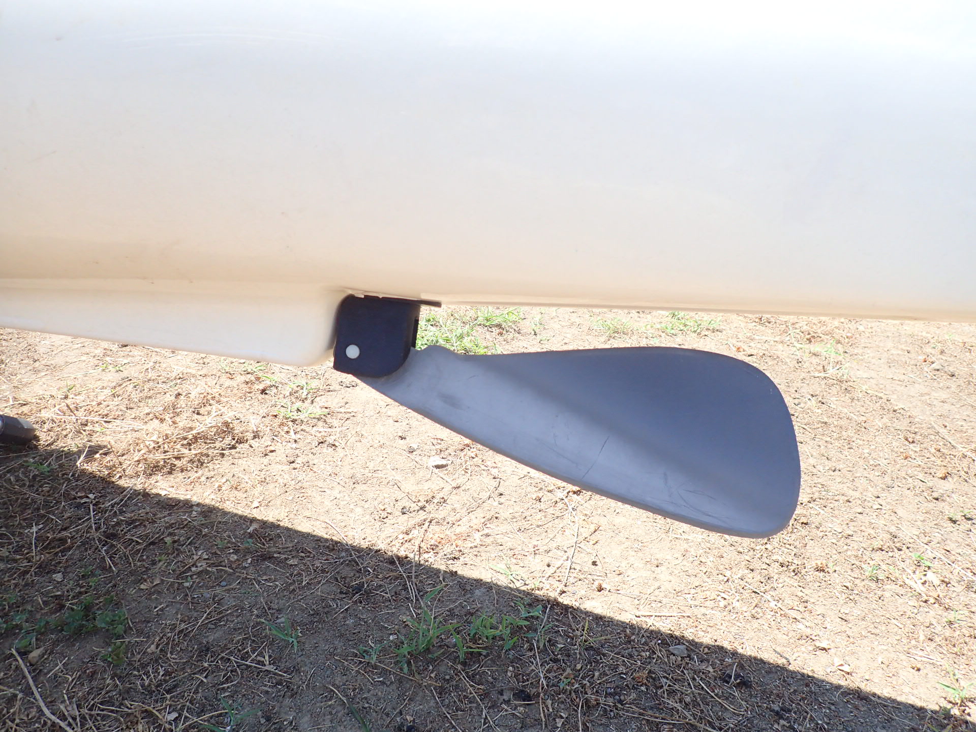 ハル(ボトム)後部には強いキールが立ち、その延長にラダーが収納されています。